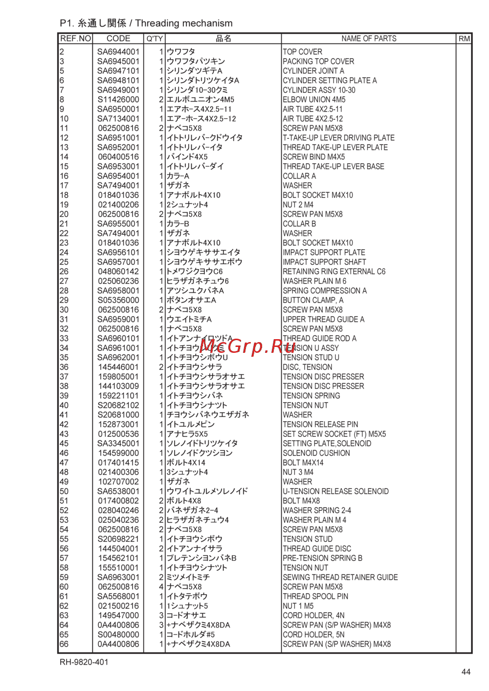 Brother RH-9820-01/02 [49/118] P1 threading m echanism