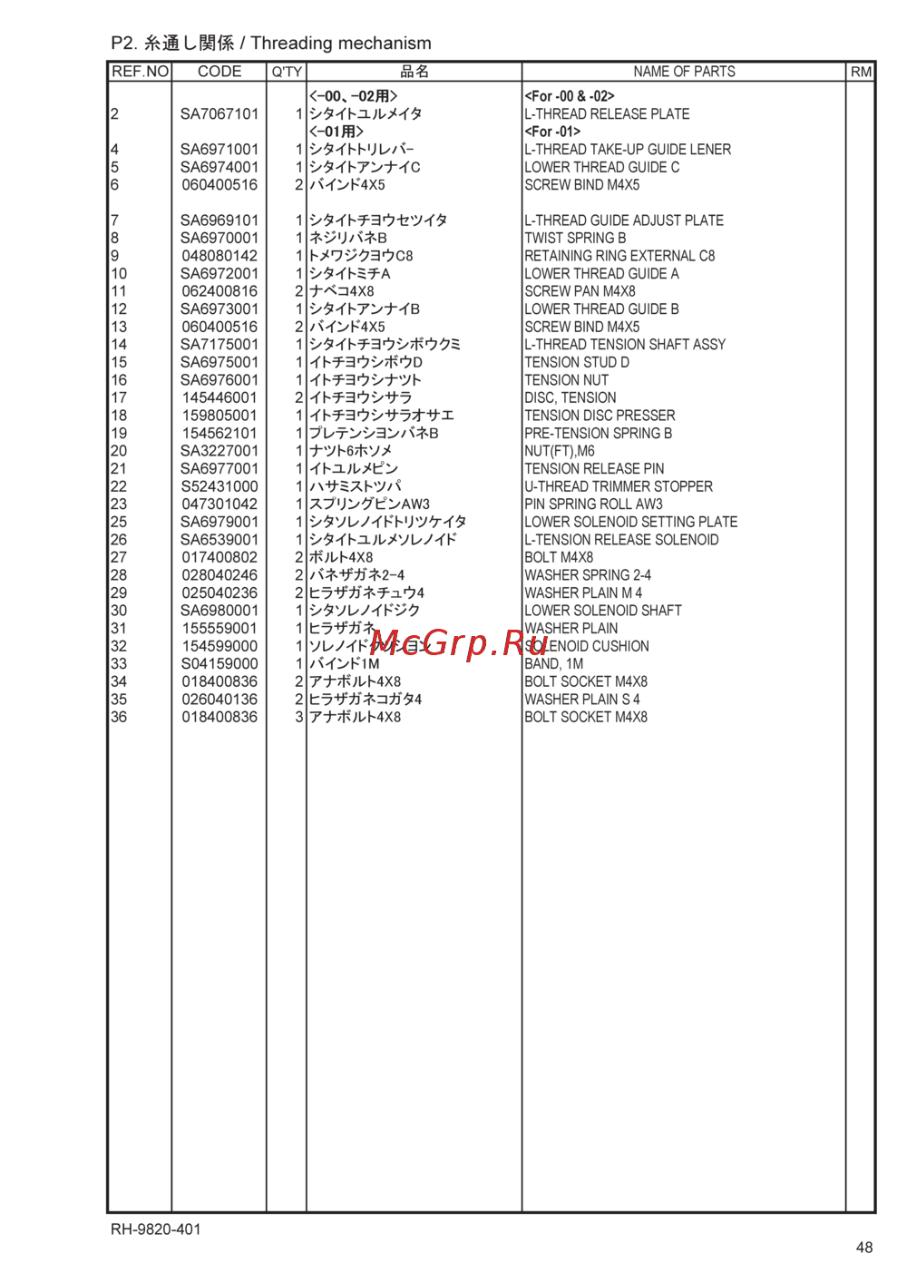 ![Brother RH-9820-01/02 [53/118] P2 threading m echanism](/views2/1497396/page53/bg35.png)