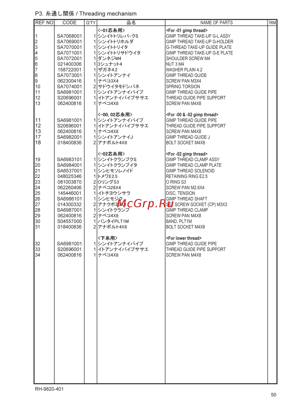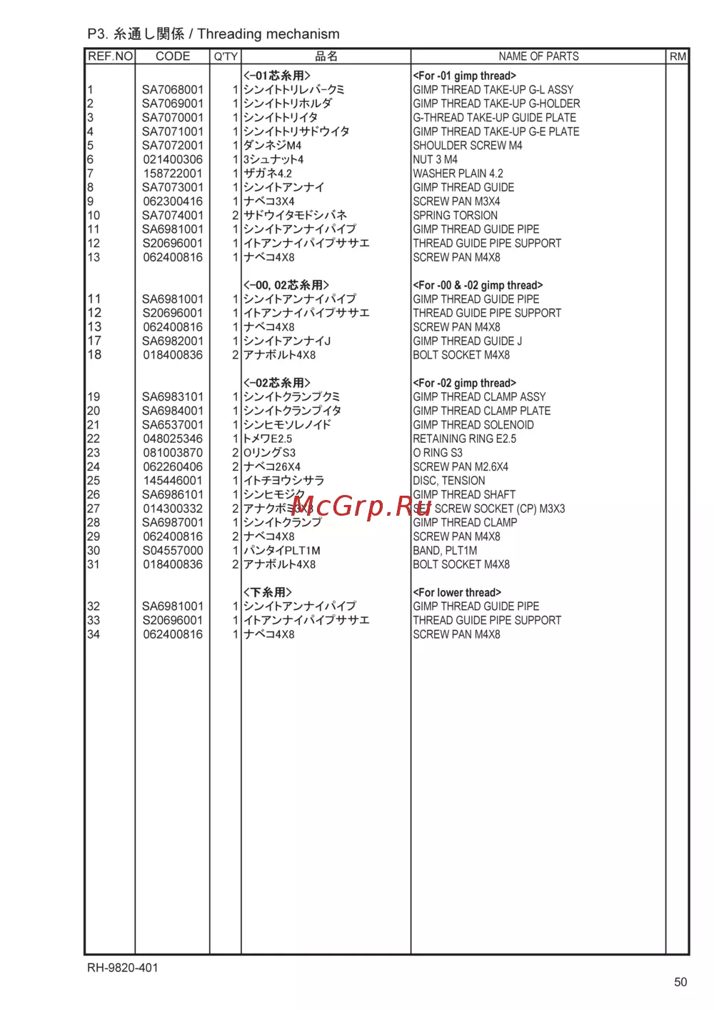 Brother RH-9820-01/02 [55/118] P3 threading m echanism