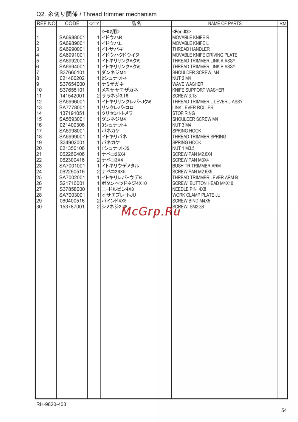 6 SA6994001 1 THREAD TRIMMER LINK B ASSY