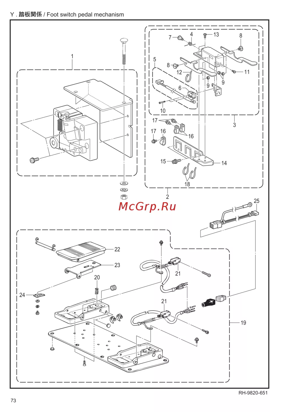 Brother RH-9820-01/02 [78/118] Y foot switch pedal mechanism
