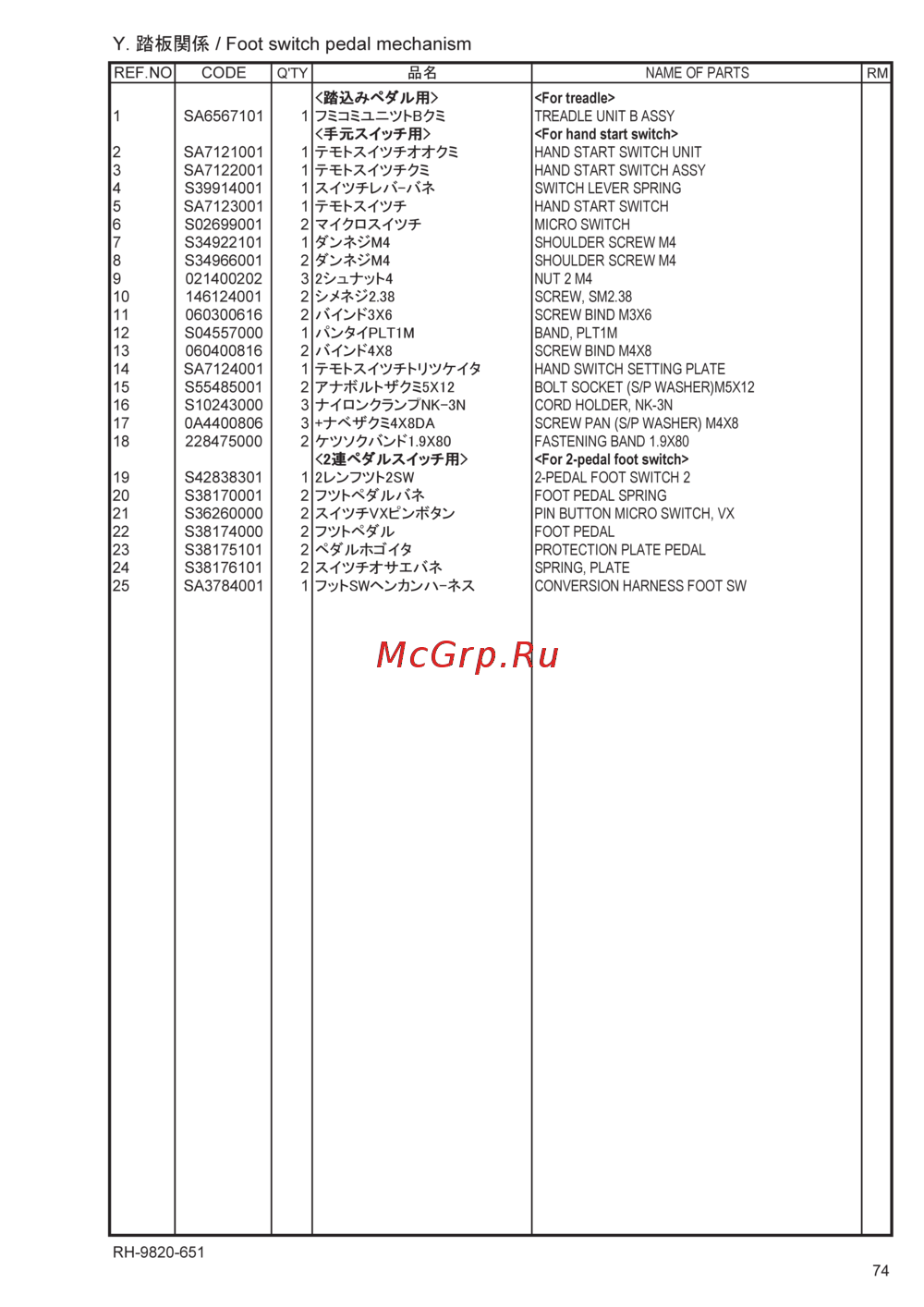 Brother RH-9820-01/02 [79/118] Y foot switch pedal m echanism