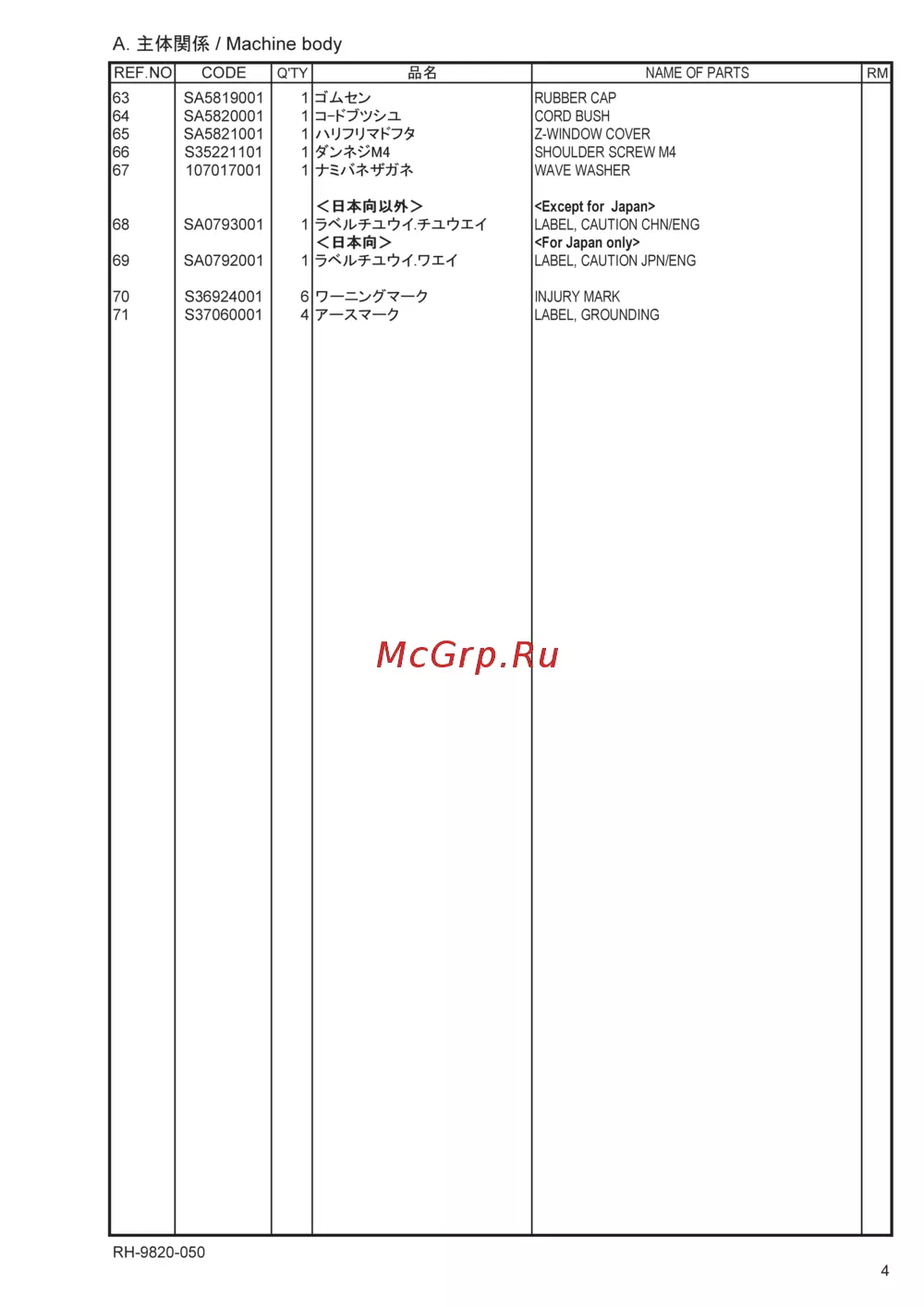 REF.NO CODE Q'TY NAME OF PARTS RM