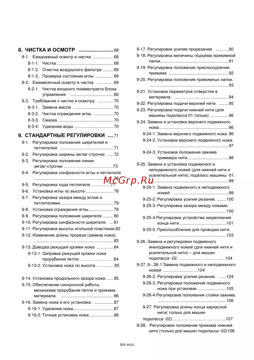 Brother RH-9820-01/02 — чистка и осмотр оборудования: руководство по обслуживанию [10/139]