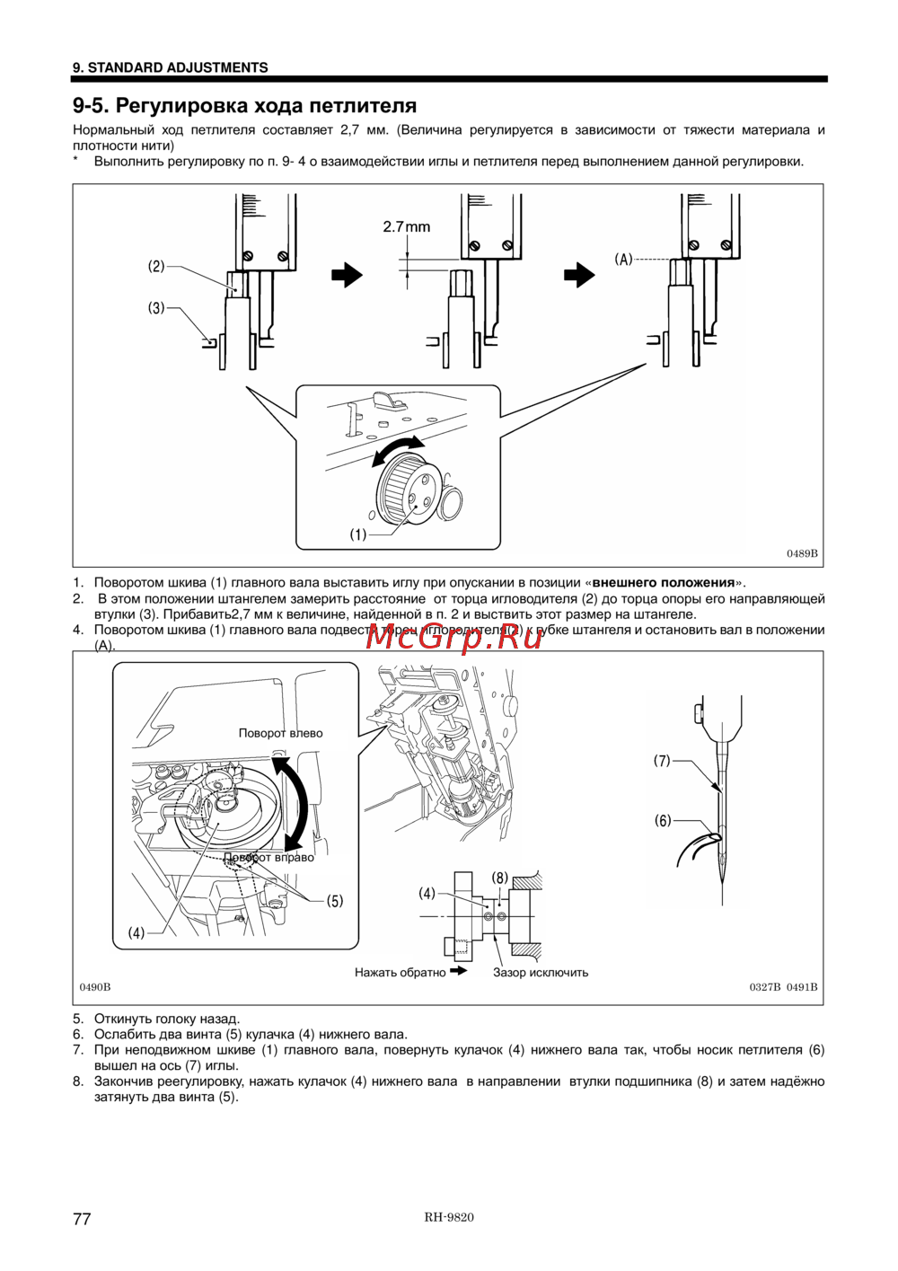 * Выполнить регулировку по п. 9- 4 о взаимодействии иглы и петлителя перед выполнением данной регулировки.