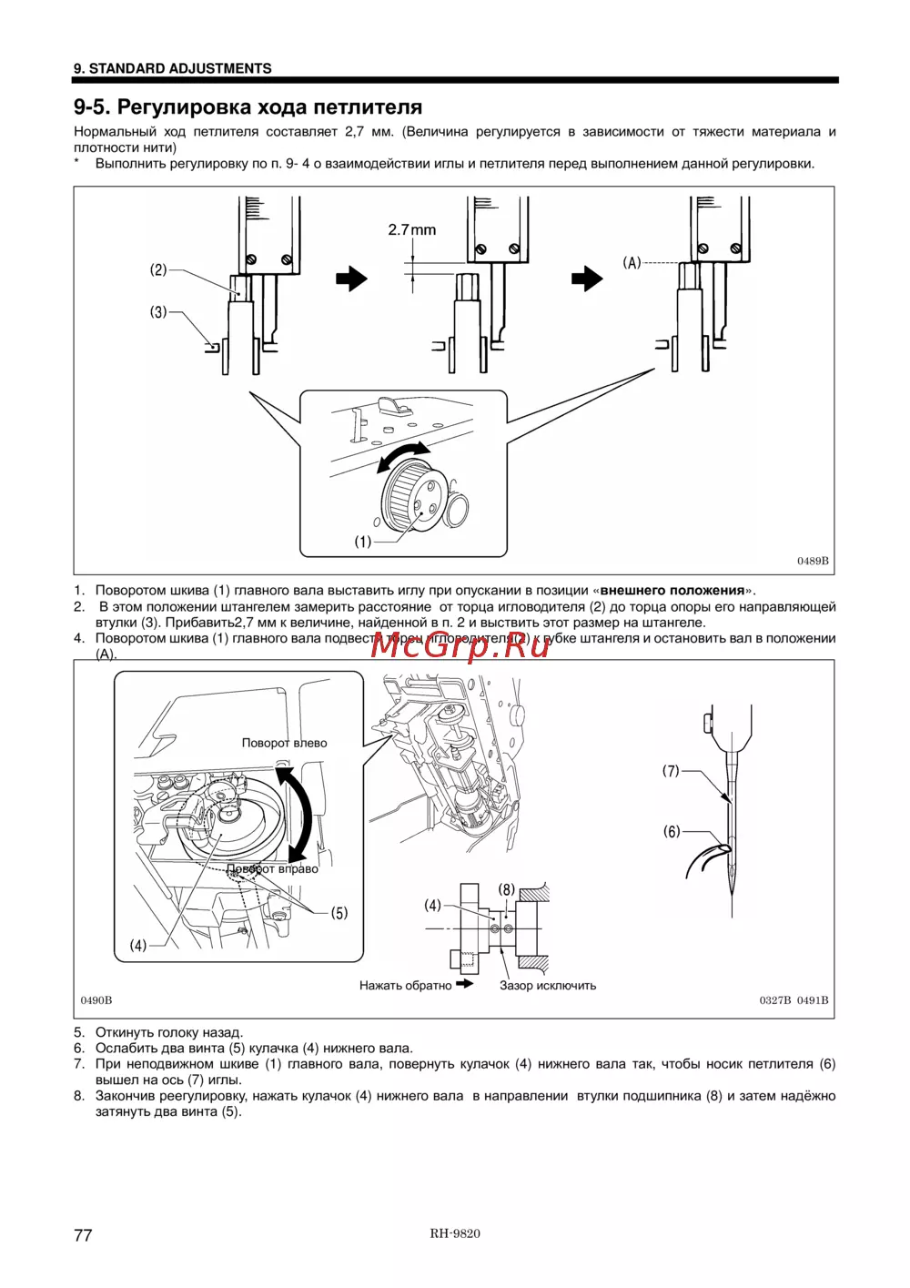 Brother RH-9820-01/02 — регулировка хода петлителя: пошаговая инструкция [100/139]