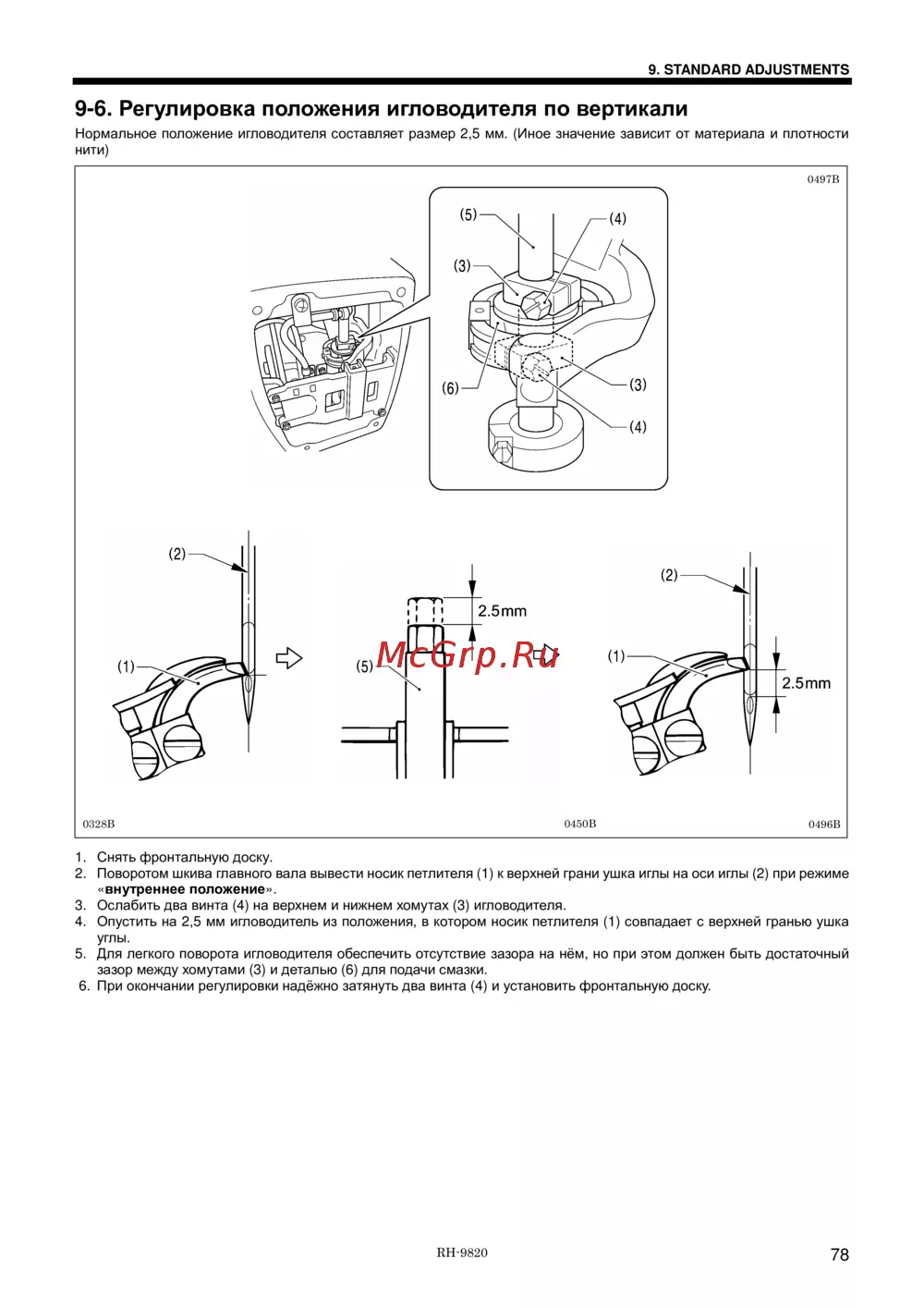 Brother RH-9820-01/02 — регулировка положения игловодителя: пошаговая инструкция [101/139]