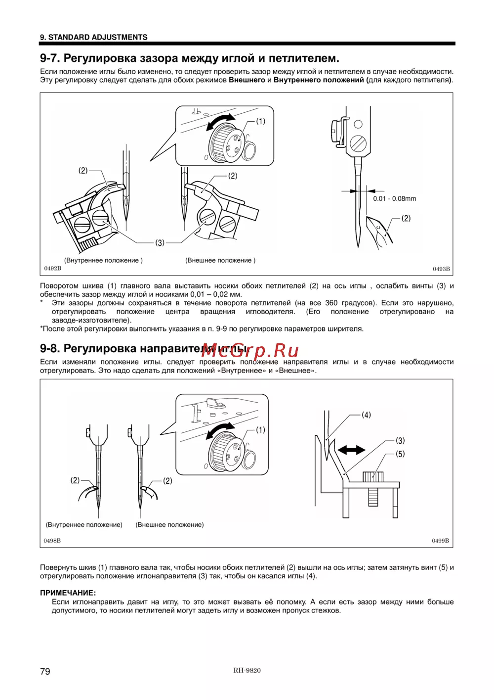 допустимого, то носики петлителей могут задеть иглу и возможен пропуск стежков.