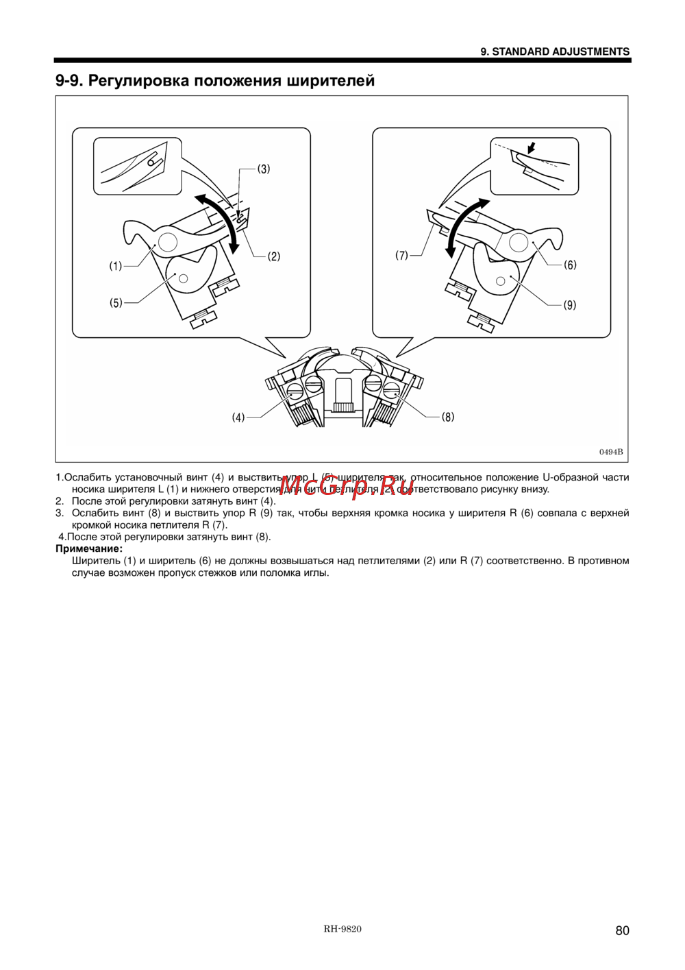 Brother RH-9820-01/02 — регулировка положения ширителей: пошаговая инструкция [103/139]