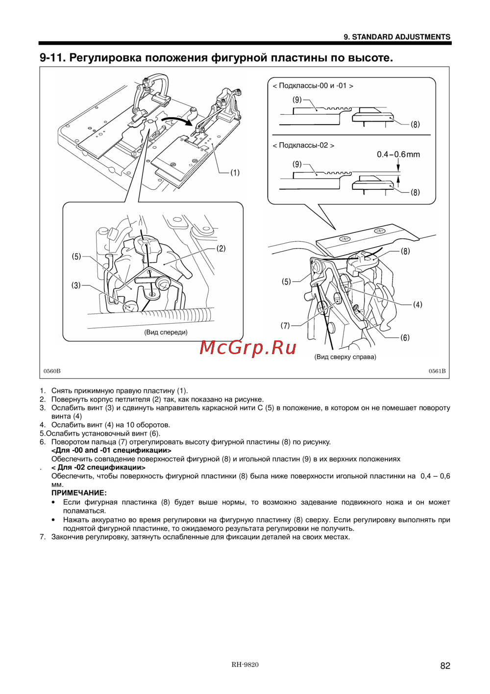 Обеспечить, чтобы поверхность фигурной пластинки (8) была ниже поверхности игольной пластинки на 0,4 – 0,6