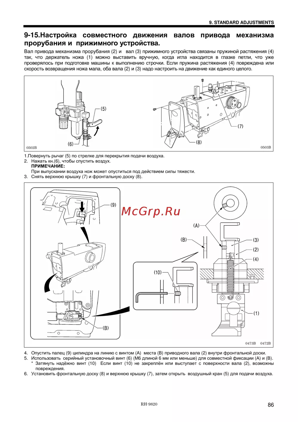Brother RH-9820-01/02 — настройка совместного движения валов привода механизма прорубания [109/139]