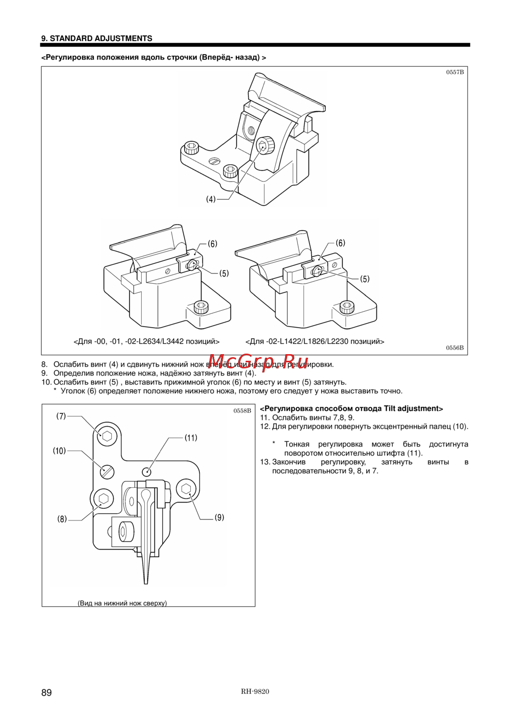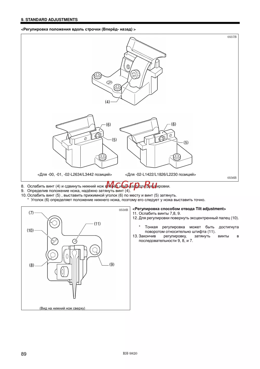 Brother RH-9820-01/02 — регулировка положения ножа и прижимного уголка для машин [112/139]
