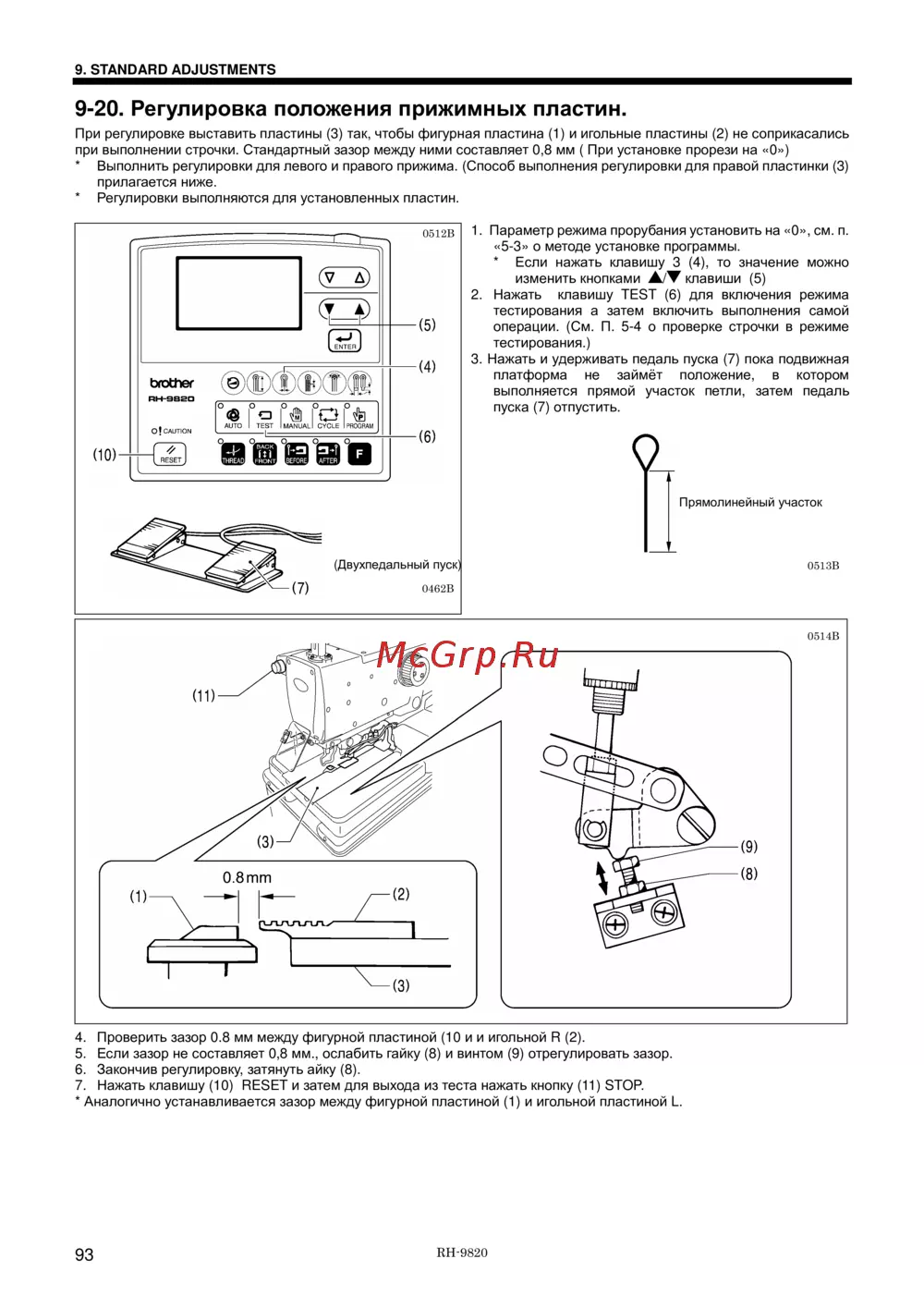Brother RH-9820-01/02 — регулировка прижимных пластин: пошаговая инструкция [116/139]