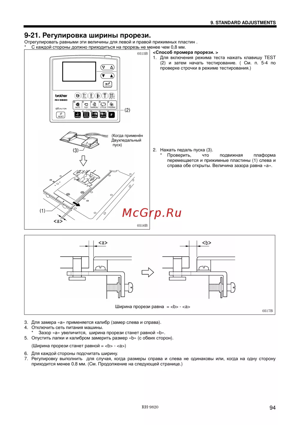 Brother RH-9820-01/02 — регулировка ширины прорези: пошаговое руководство [117/139]