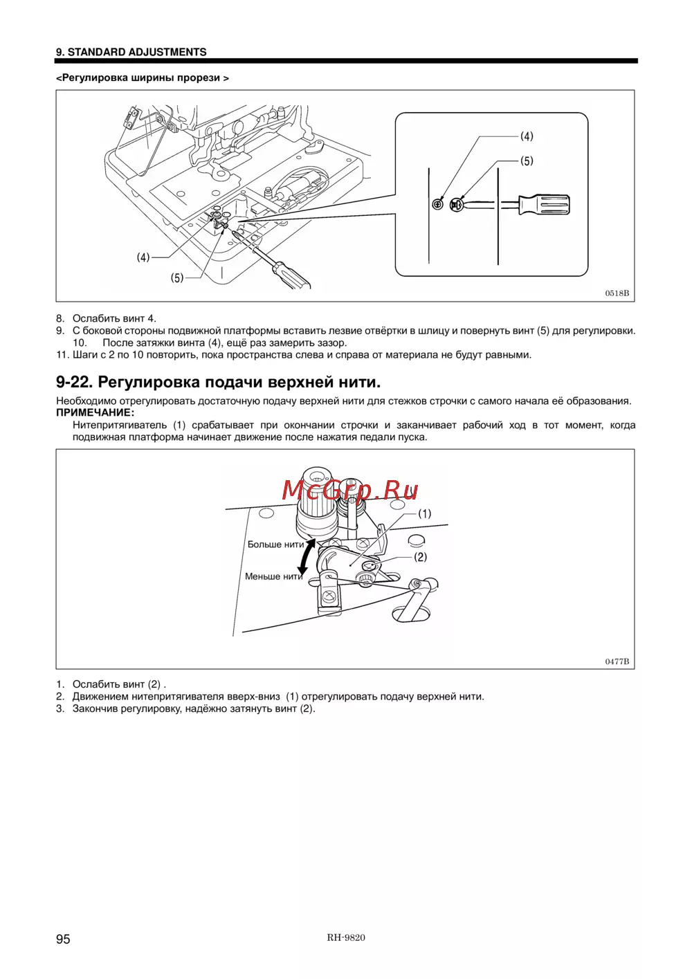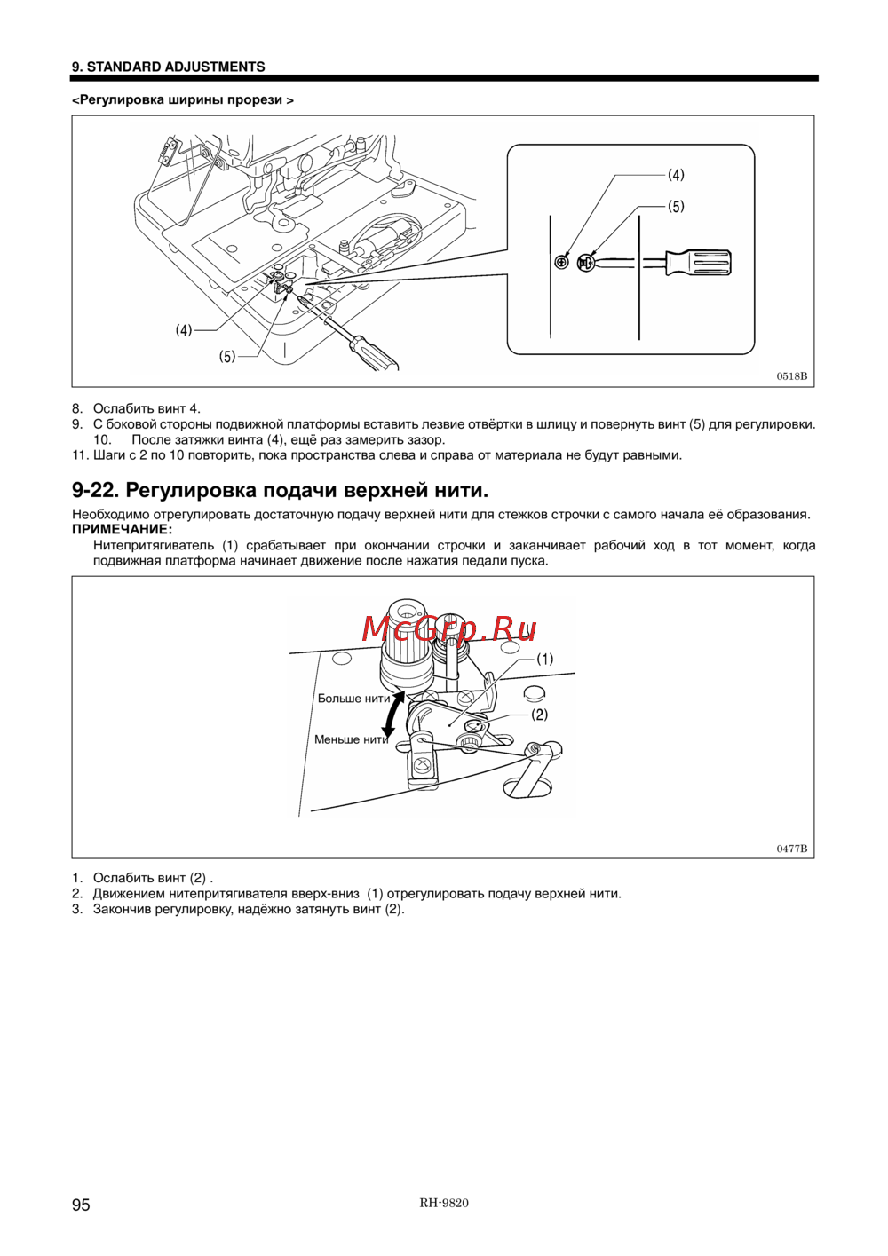 Brother RH-9820-01/02 — регулировка ширины прорези и подачи верхней нити [118/139]