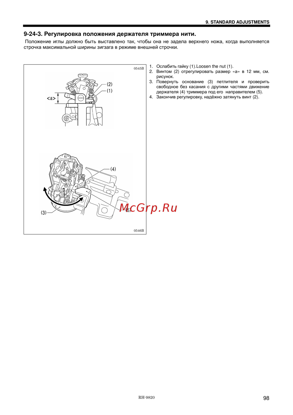 - 5 регулировка хода петлителя p.100
