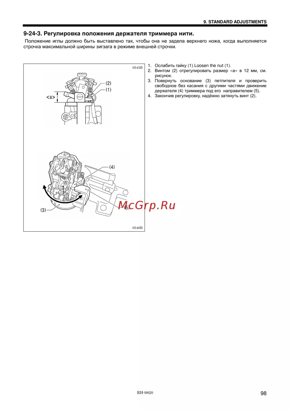 Brother RH-9820-01/02 — регулировка положения держателя триммера: пошаговая инструкция [121/139]