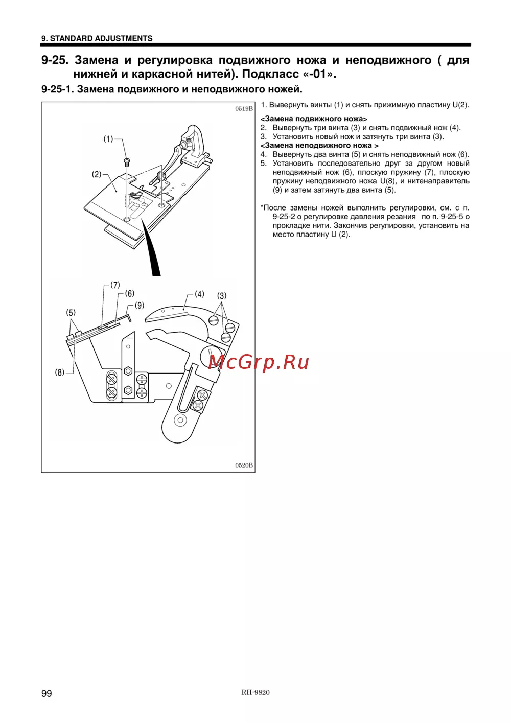 ![Brother RH-9820-01/02 [122/139] 25 замена и регулировка подвижного ножа и неподвижного для нижней и каркасной нитей подкласс 01](/views2/1497397/page122/bg7a.png)