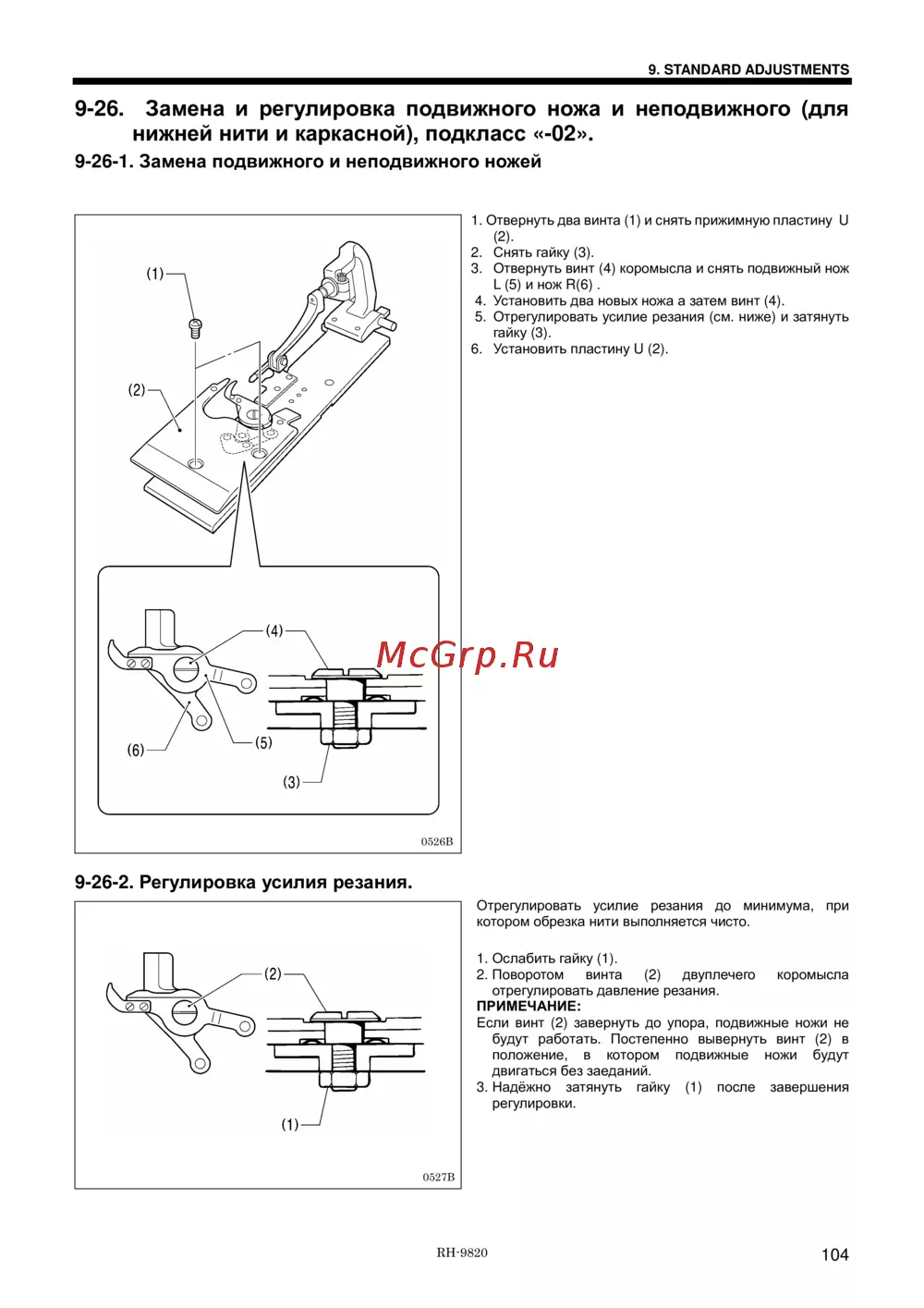 9-26-1. Замена подвижного и неподвижного ножей