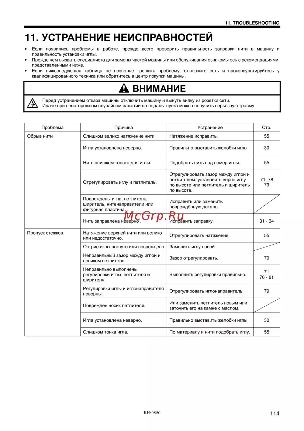 Brother RH-9820-01/02 — устранение неисправностей: советы по настройке швейных машин [137/139]