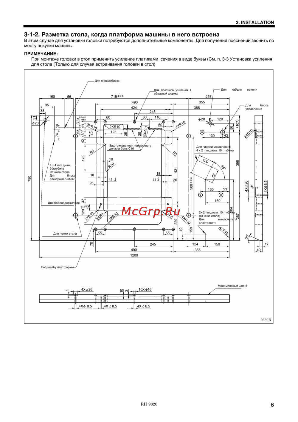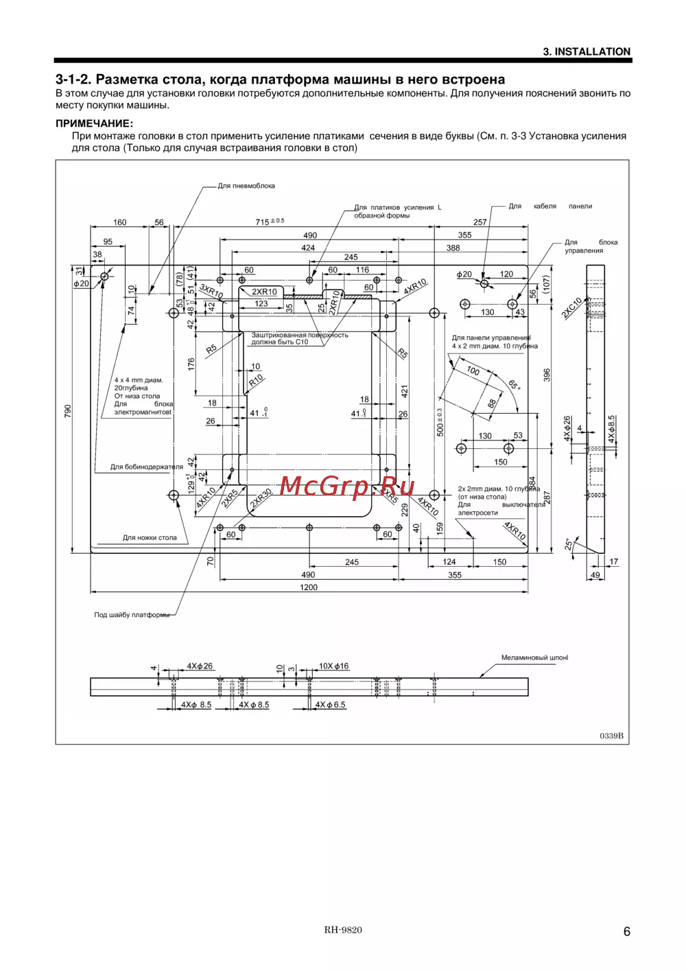 Brother RH-9820-01/02 — установка и разметка стола для встроенной машины [17/139]