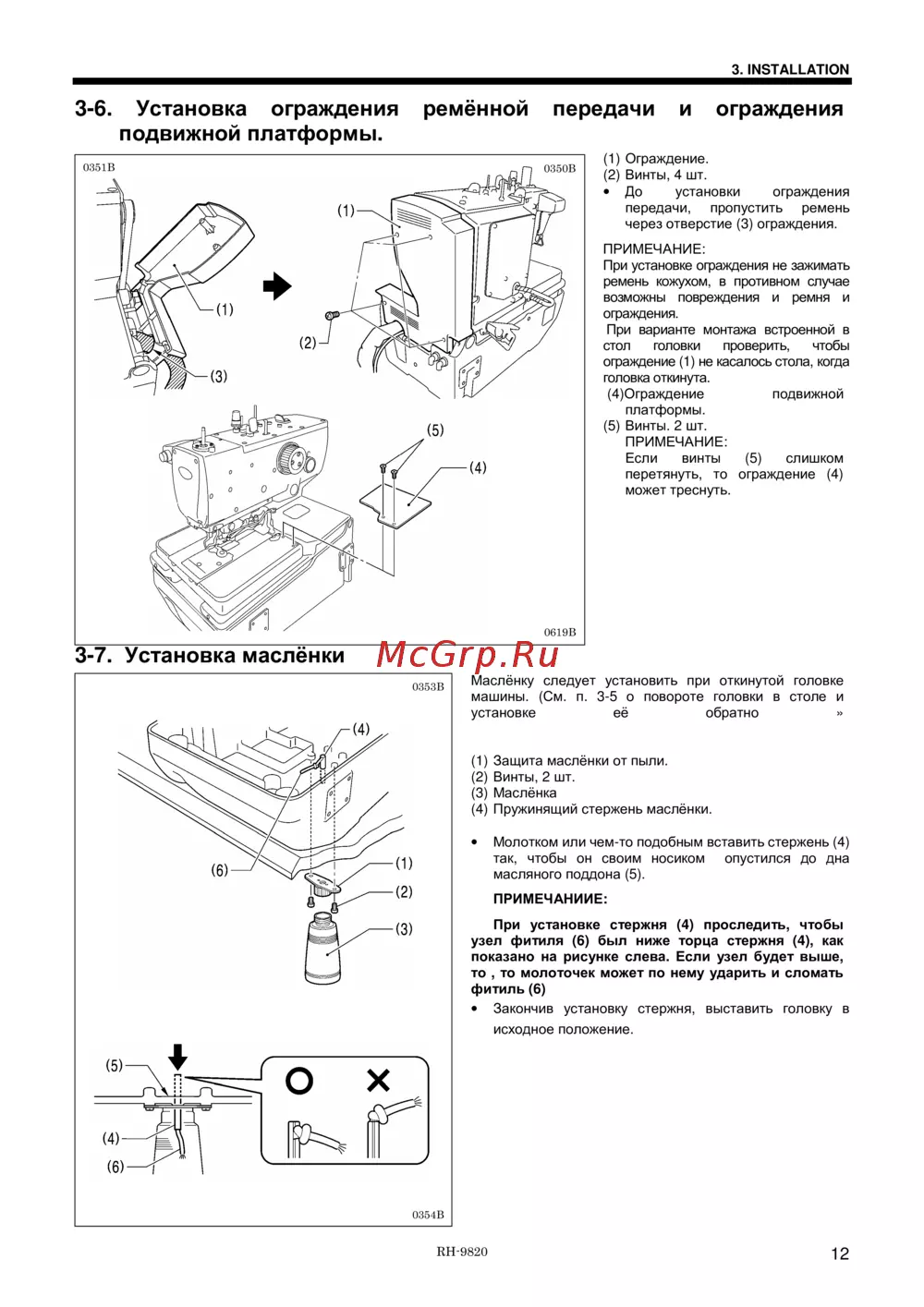 Brother RH-9820-01/02 — установка ограждений и маслёнки: пошаговое руководство [23/139]