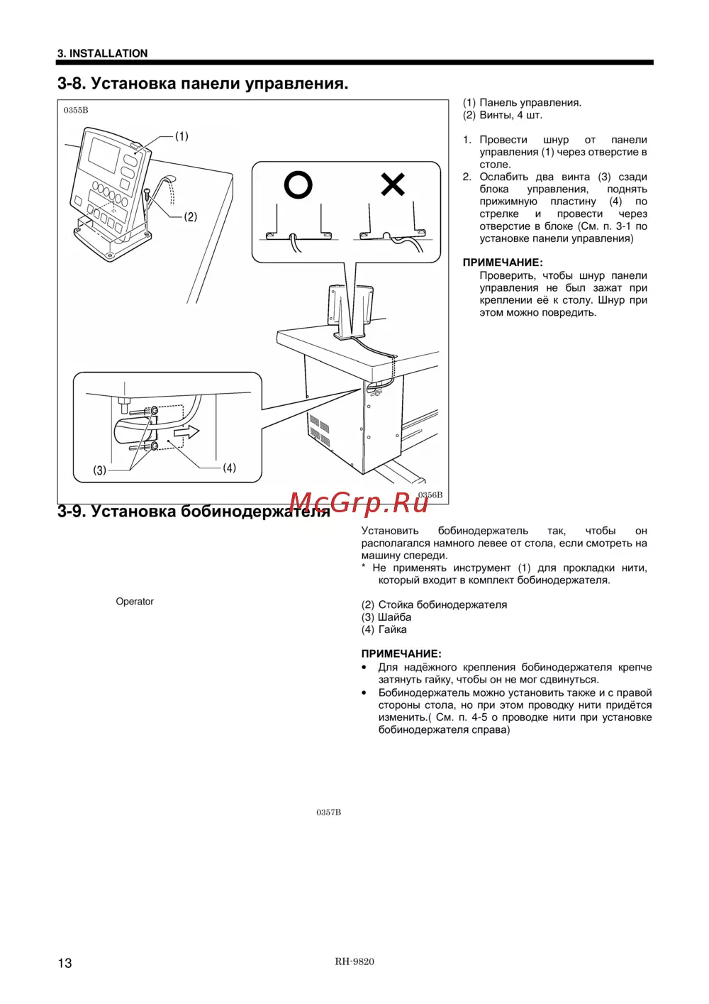 Brother RH-9820-01/02 — установка панели управления и бобинодержателя: пошаговая инструкция [24/139]