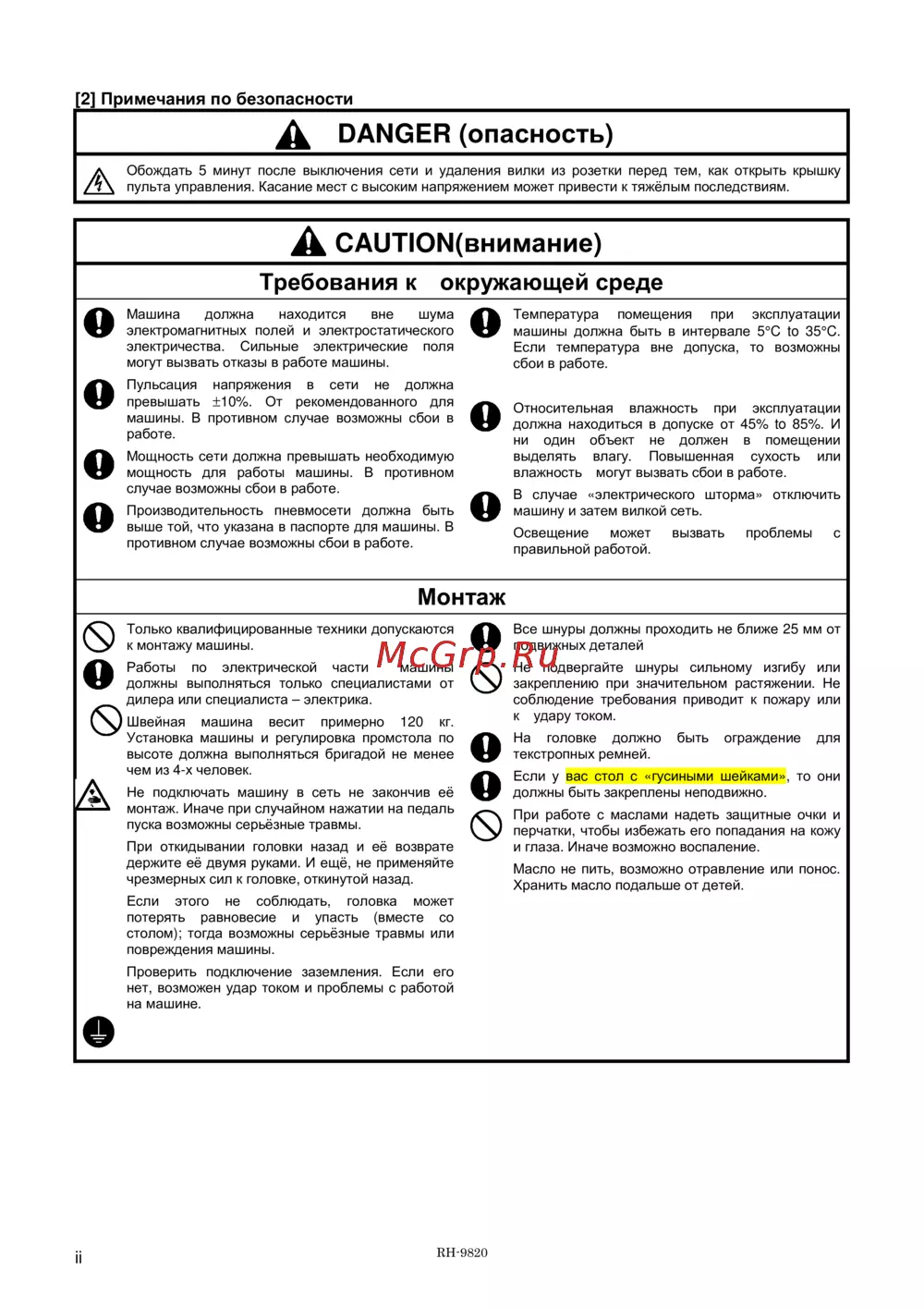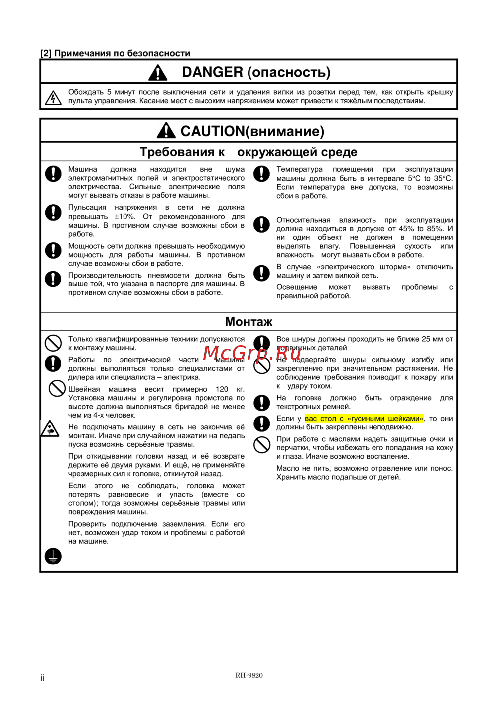 Brother RH-9820-01/02 — безопасность и эксплуатация швейных машин: важные рекомендации [4/139]