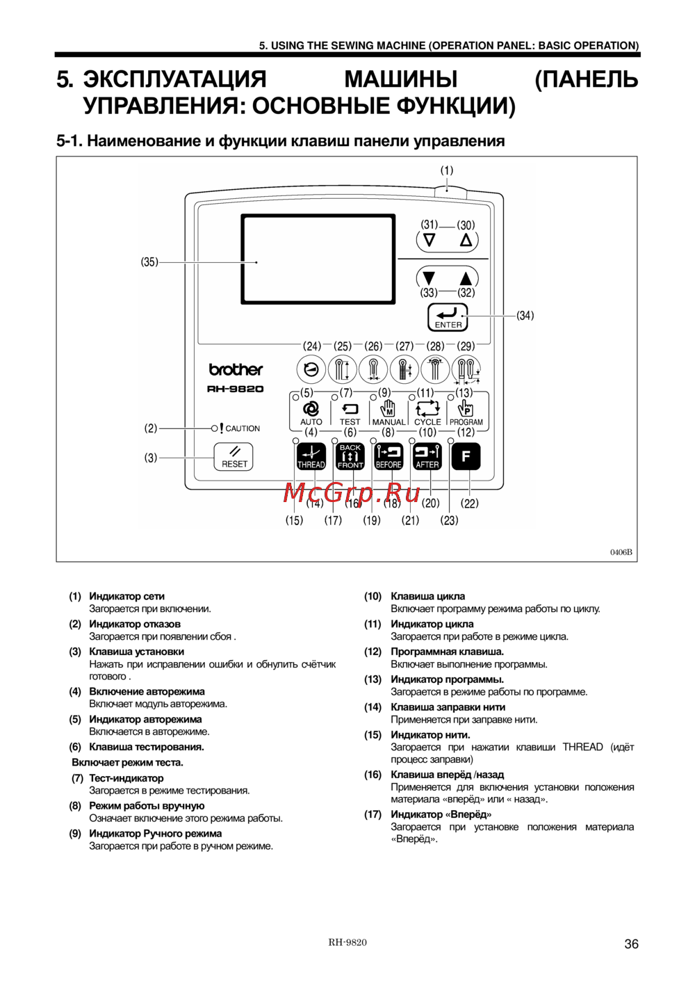 ![Brother RH-9820-01/02 [49/139] Эксплуатация машины панель управления основные функции](/views2/1497397/page49/bg31.png)