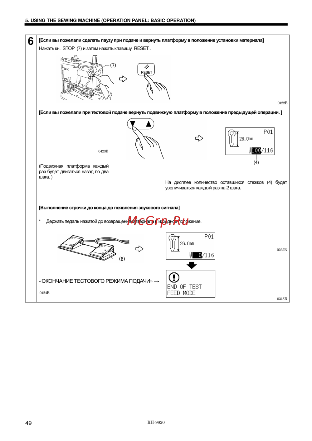 - 7 переключение режима выполнения строчки при включённой машине p.90