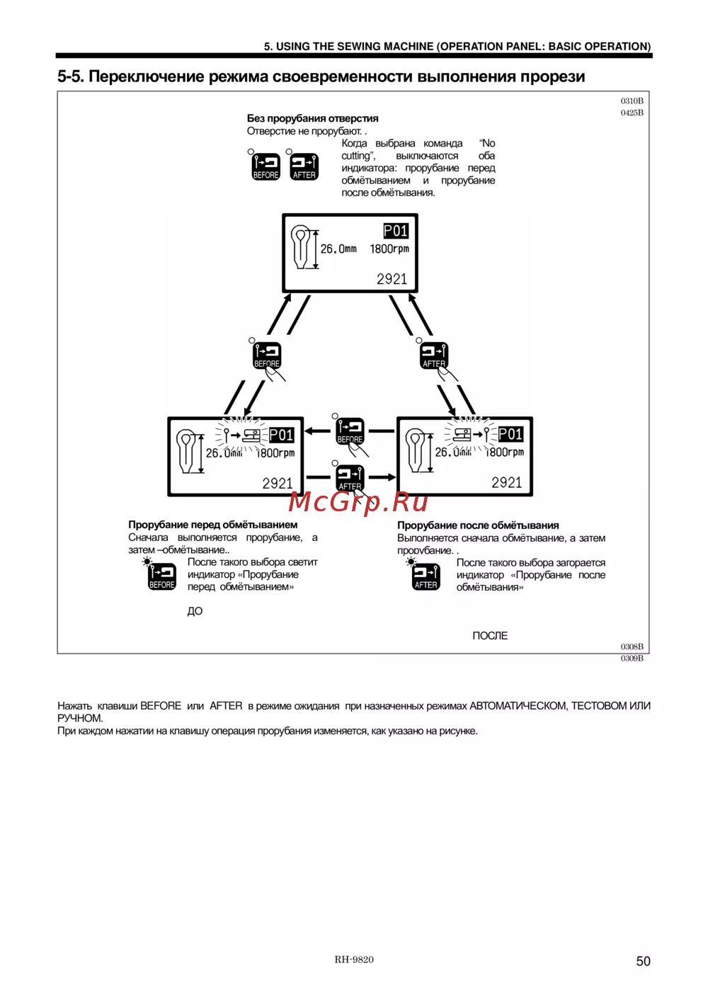 - 7 переключение режима выполнения строчки при включённой машине p.90