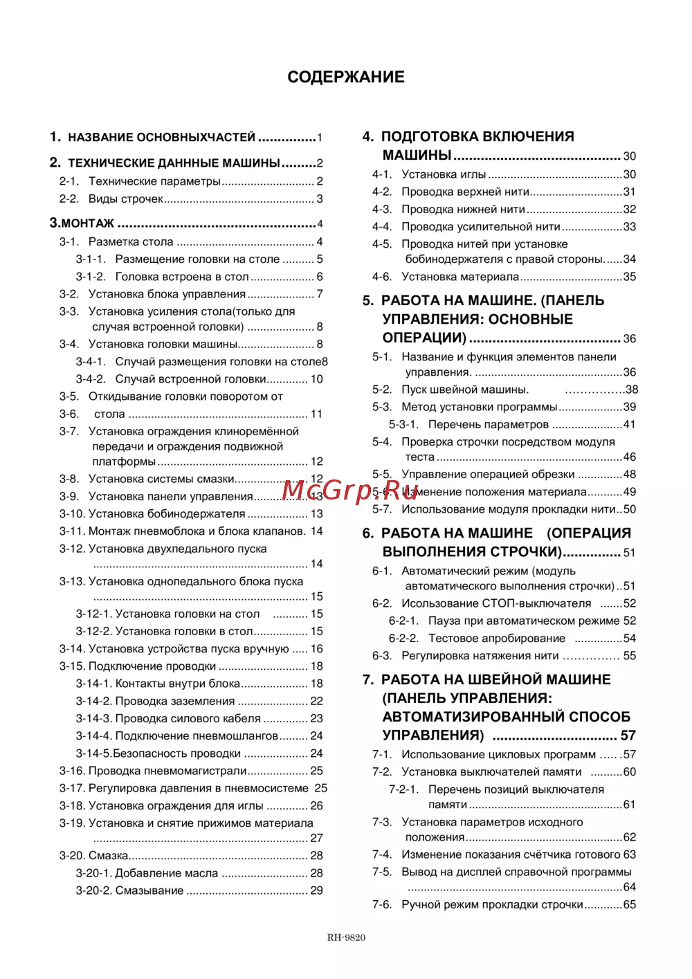 Brother RH-9820-01/02 — инструкция по монтажу и настройке швейного оборудования [8/139]