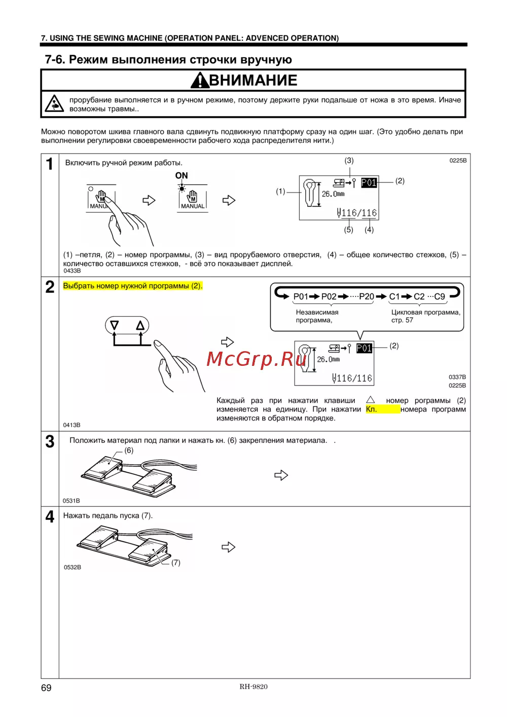 - 7 переключение режима выполнения строчки при включённой машине p.90