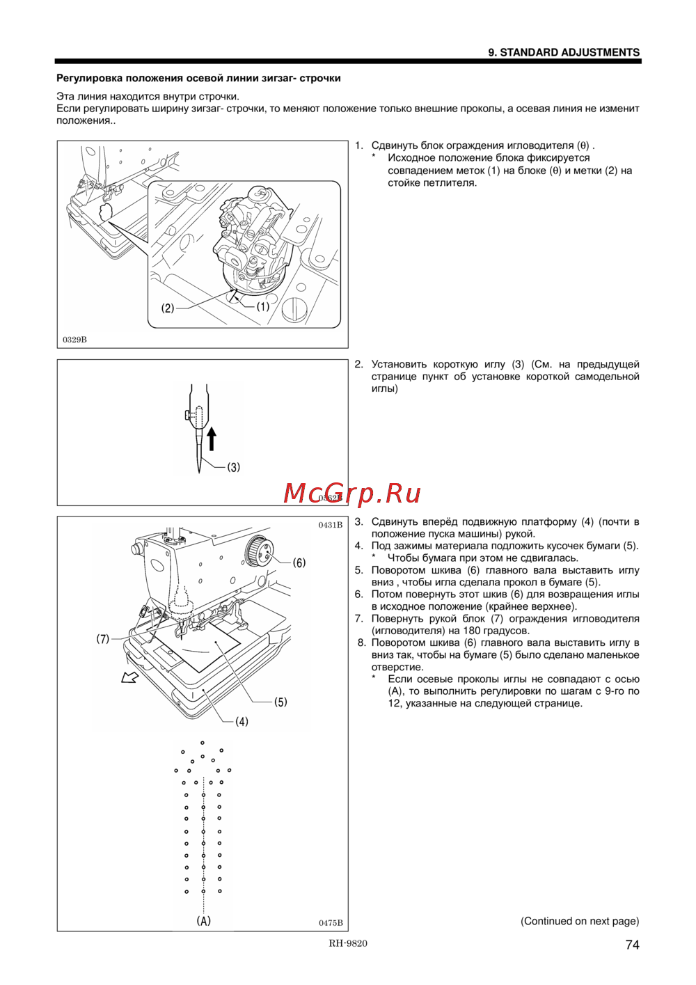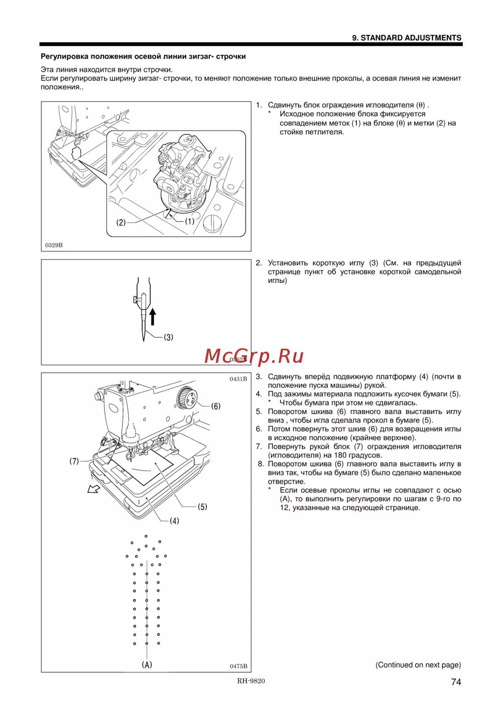 Brother RH-9820-01/02 — регулировка положения осевой линии зигзаг-строчки: пошаговое руководство [97/139]