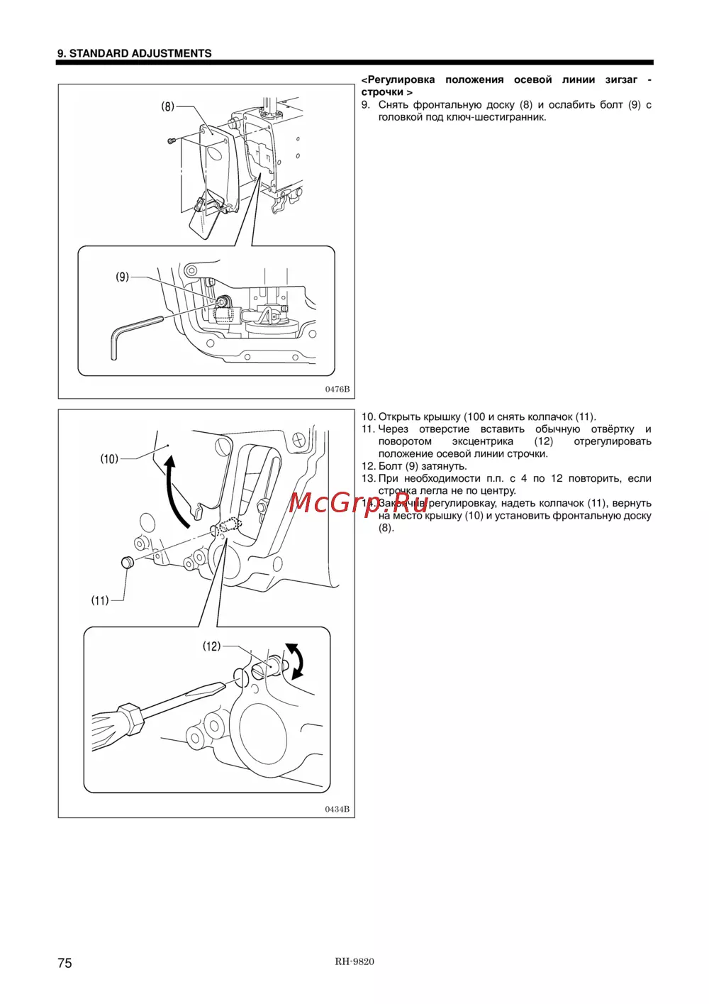 Brother RH-9820-01/02 — регулировка положения осевой линии зигзага: пошаговая инструкция [98/139]