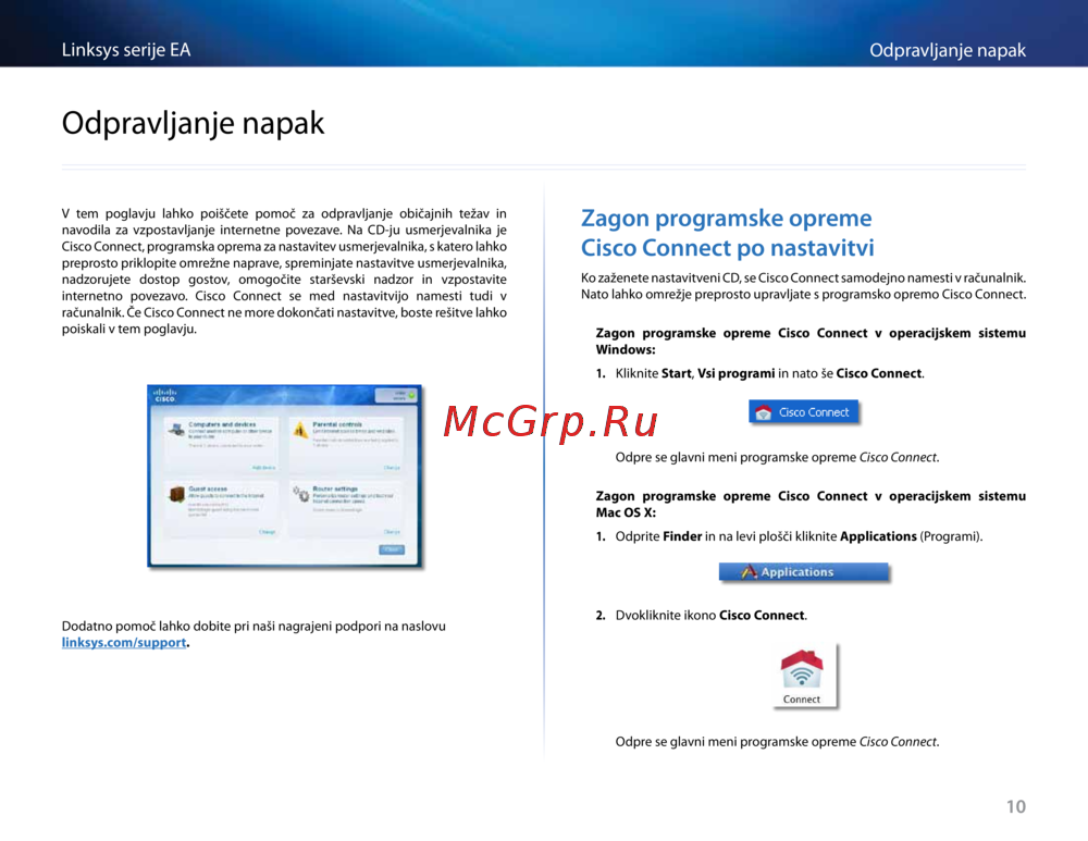 internetno povezavo. Cisco Connect se med nastavitvijo namesti tudi v