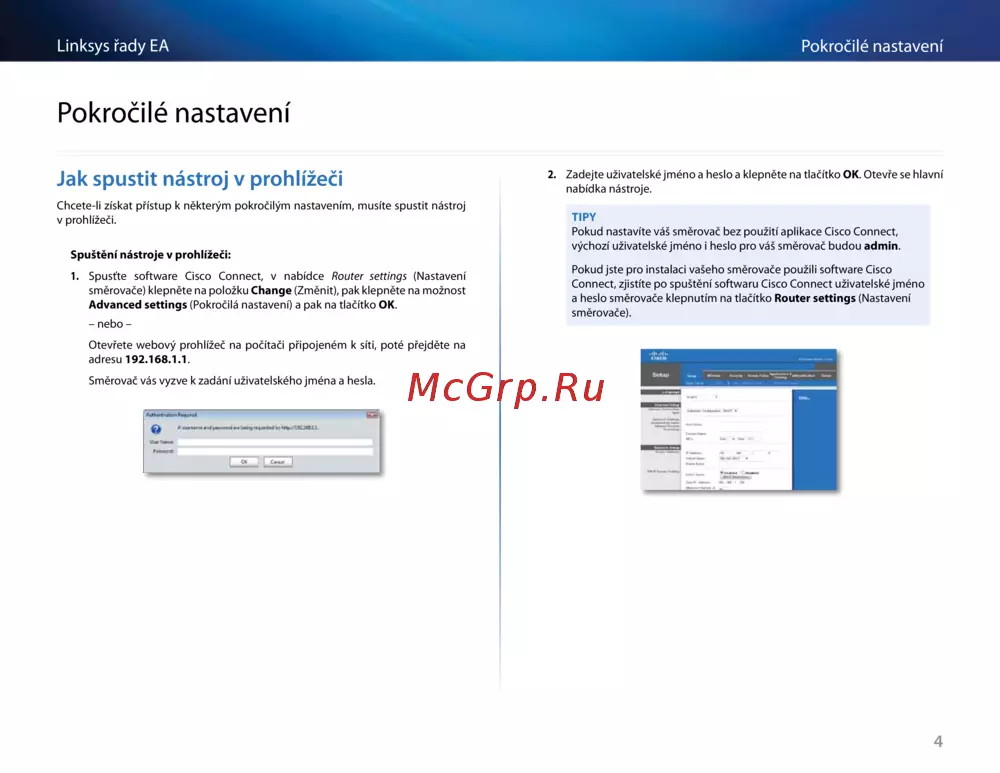 Směrovač vás vyzve k zadání uživatelského jména a hesla.