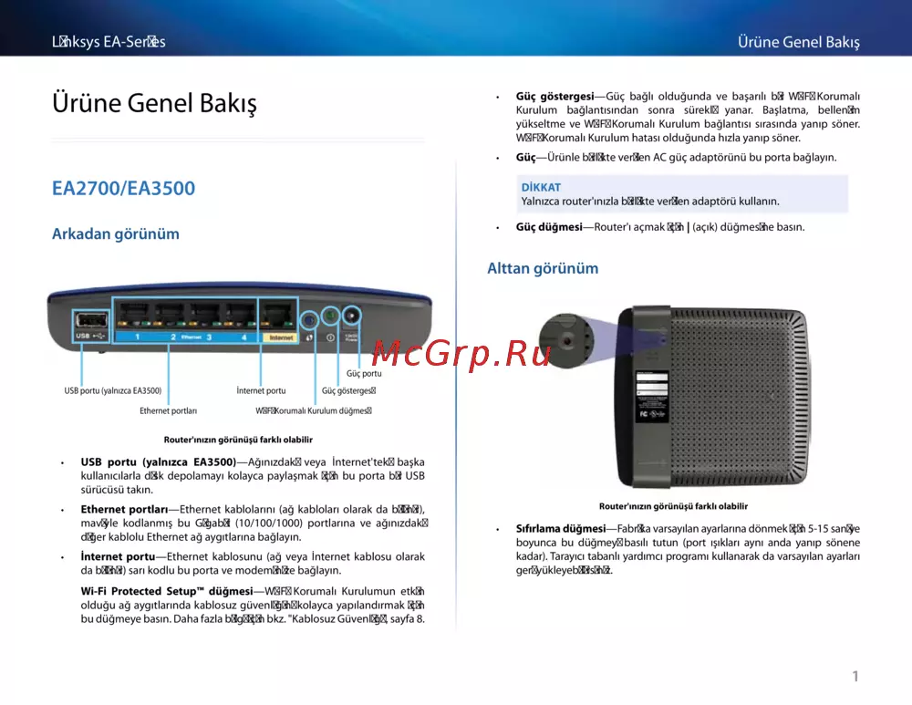 Yalnızca router'ınızla brlkte verlen adaptörü kullanın.