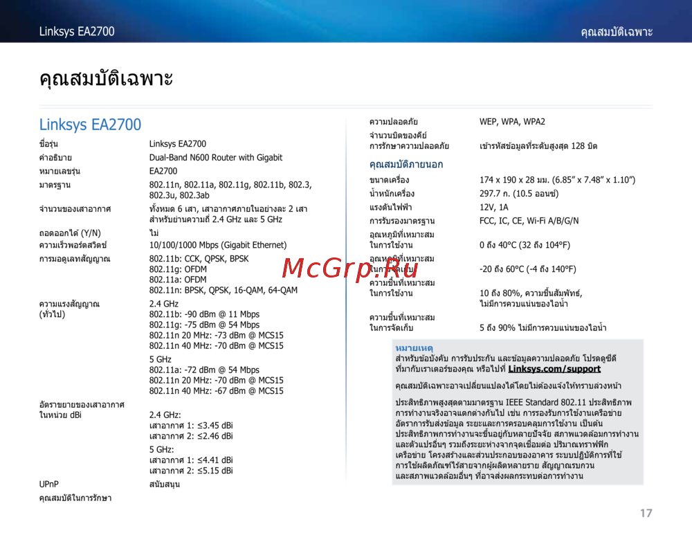 Linksys EA2700 [524/591] ค ณสมบ ต เฉพาะ