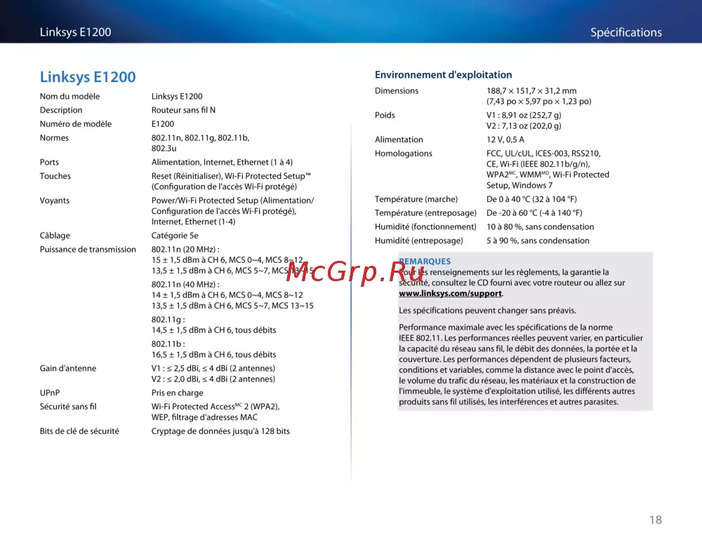 Linksys E1200 — spécifications détaillées d'un routeur sans fil performant [295/702]