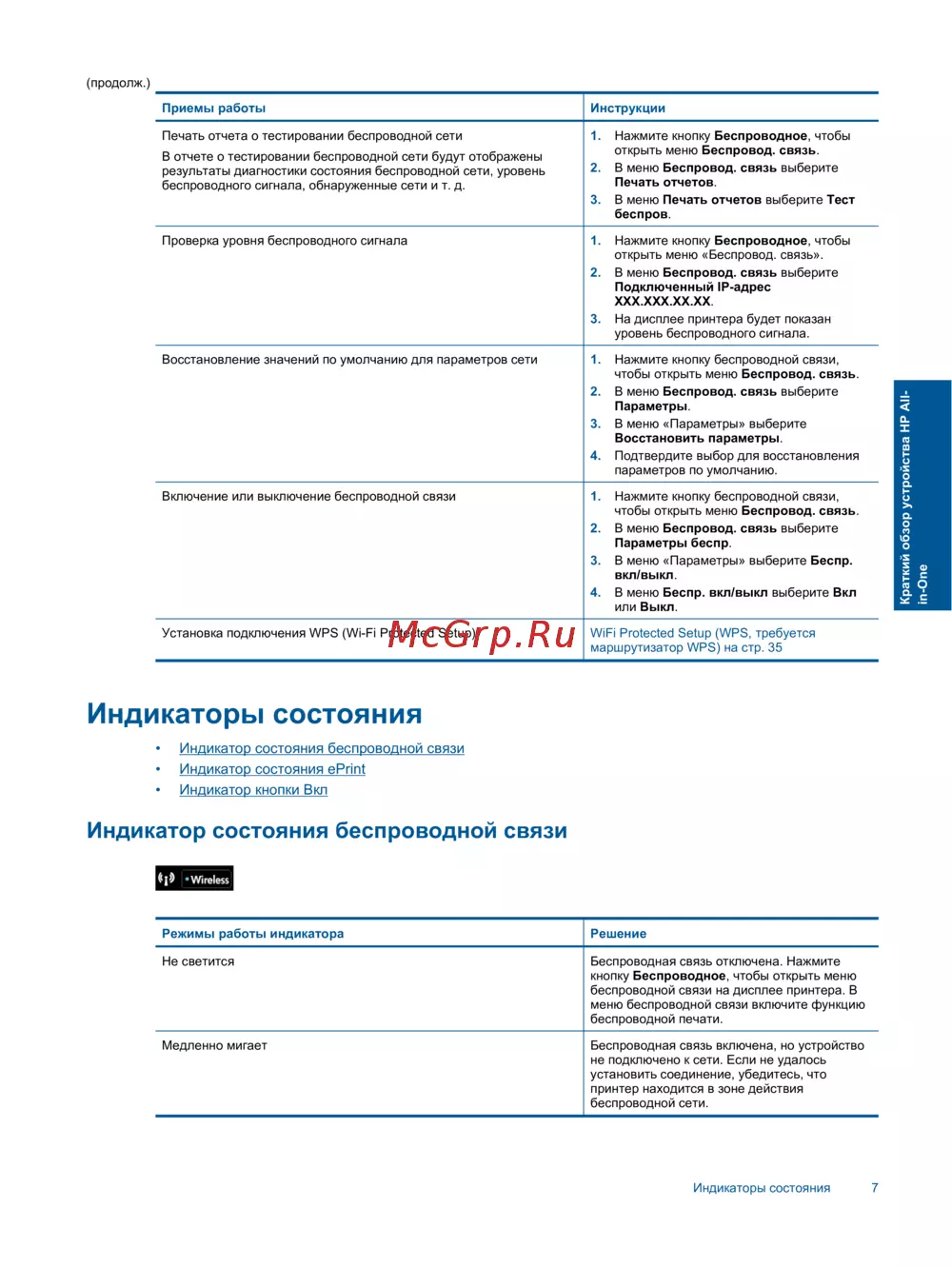 - Параметры беспроводной связи p.7