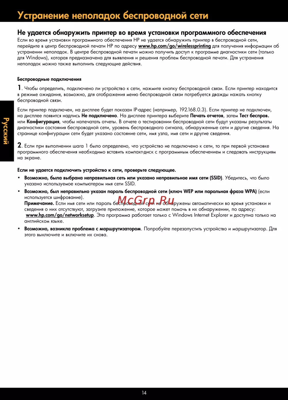 HP 3070A В611B — устранение неполадок при установке беспроводного принтера [14/24]