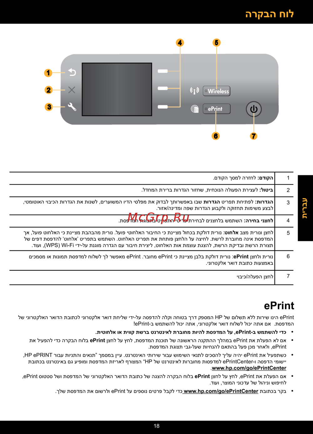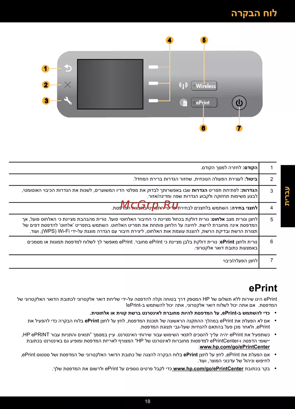 • .ךלש תספדמה תא םושרלו ePrint לע םיפסונ םיטרפ לבקל ידכ www.hp.com/go/ePrintCenter תבותכב רקב