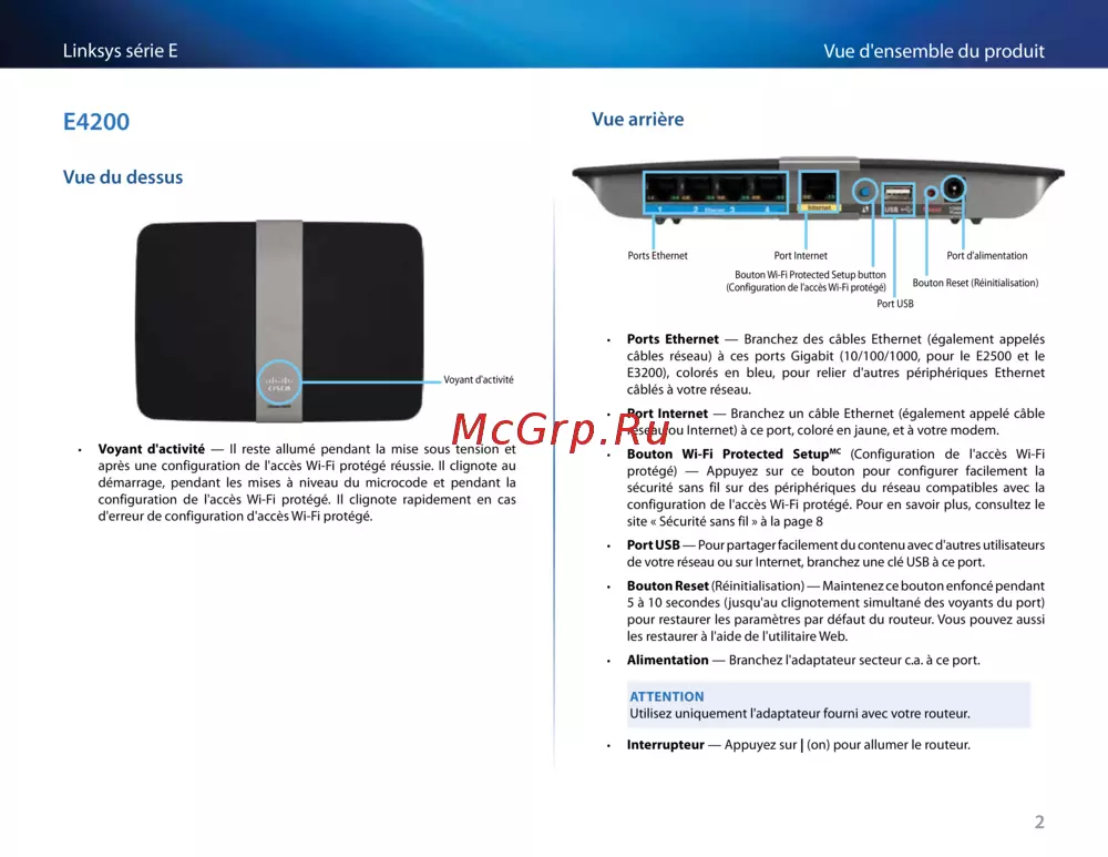 Utilisez uniquement l'adaptateur fourni avec votre routeur.