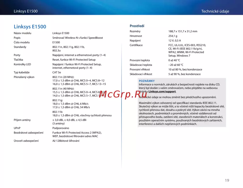 Linksys E900 — technické údaje bezdrátového směrovače s funkcí SpeedBoost [71/702]