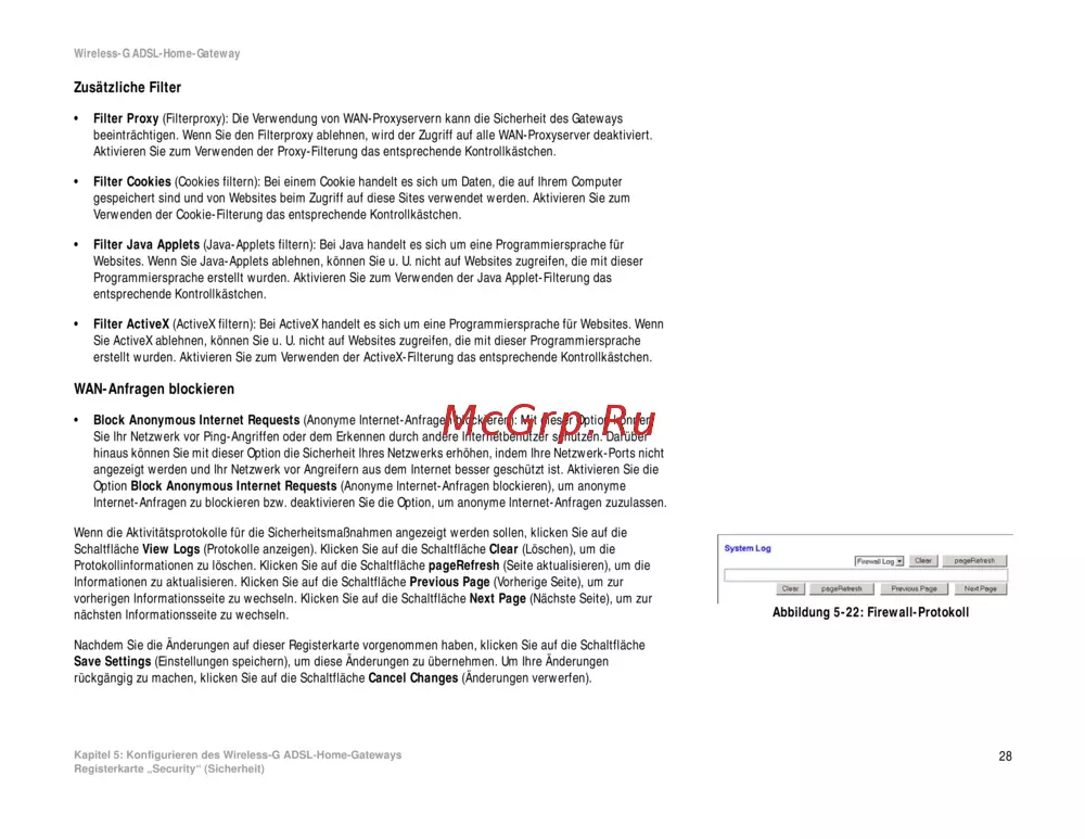 Erfahren Sie, wie Sie die Sicherheit Ihres Wireless-G ADSL-Home-Gateways durch Proxy-, Cookie-, Java- und ActiveX-Filterung sowie durch das Blockieren anonymer Internetanfragen erhöhen können.