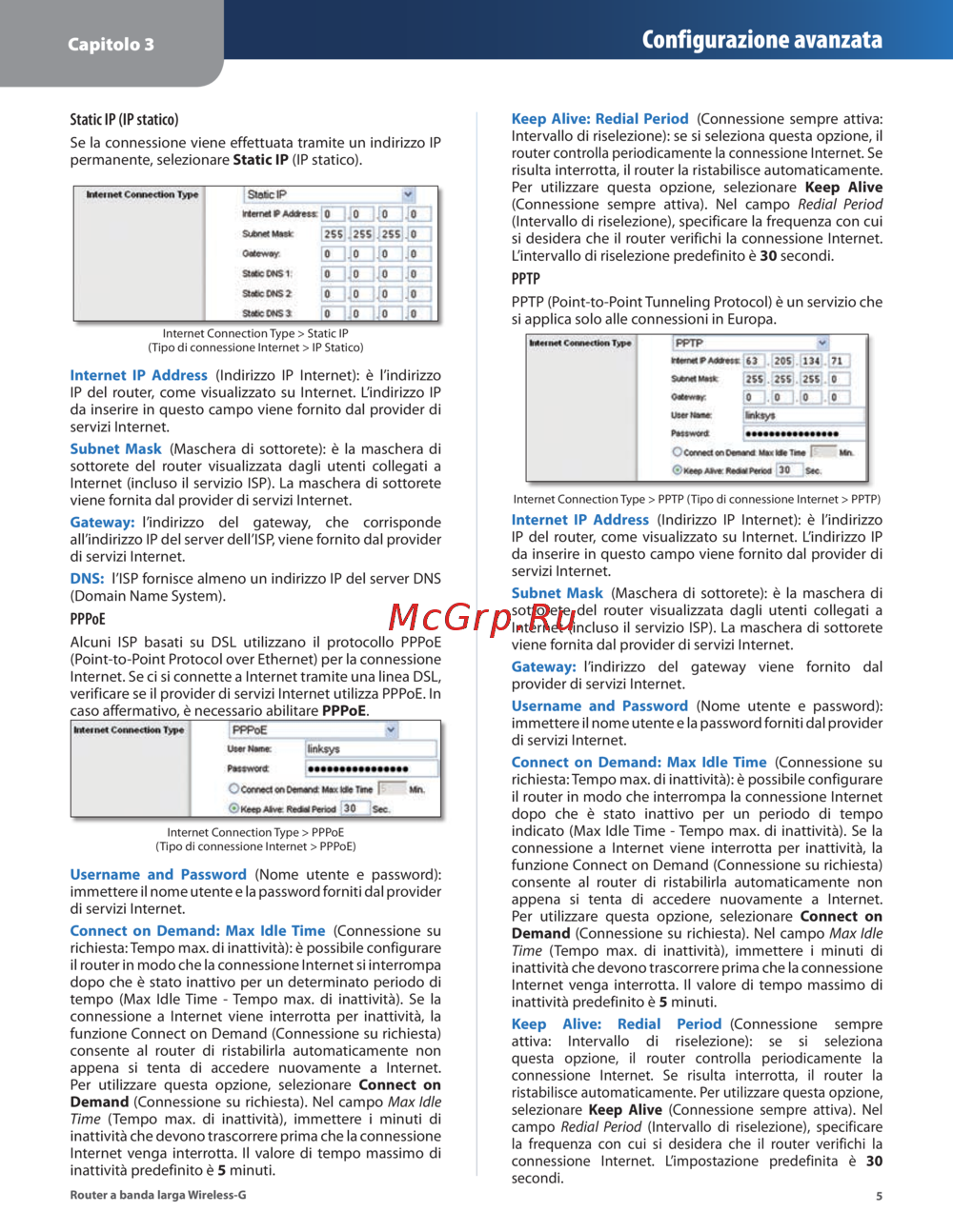 Scopri come configurare il tuo router a banda larga Wireless-G con IP statico o PPPoE. Segui le istruzioni per una connessione Internet stabile e veloce.