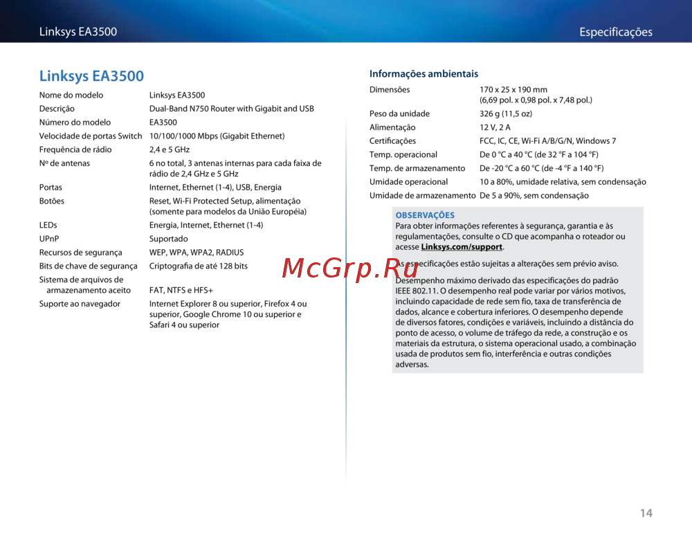 Linksys EA6500 — especificações do Roteador Dual-Band N750 com Gigabit e USB [376/531]