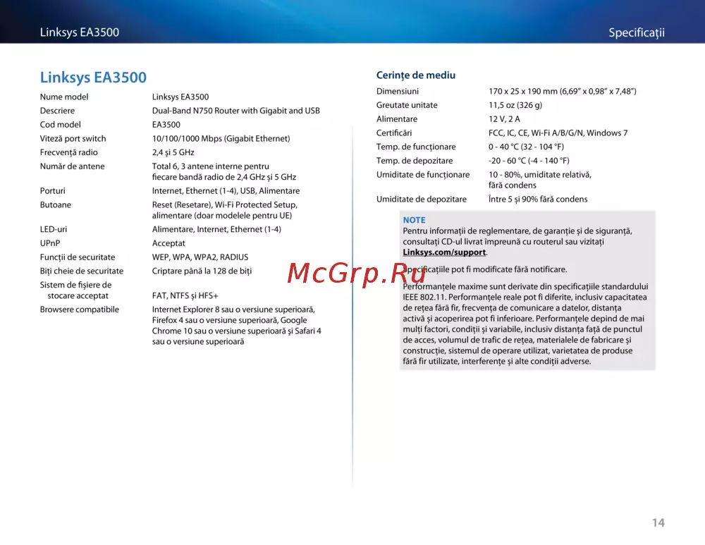 Linksys EA6500 [395/531] Specificaţii