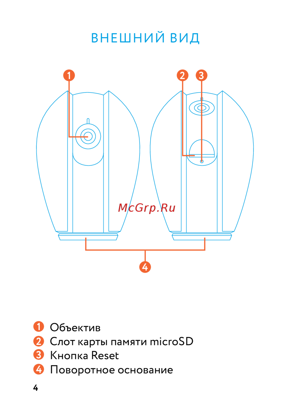 - Объектив слот карты памяти microsd кнопка reset поворотное основание p.4